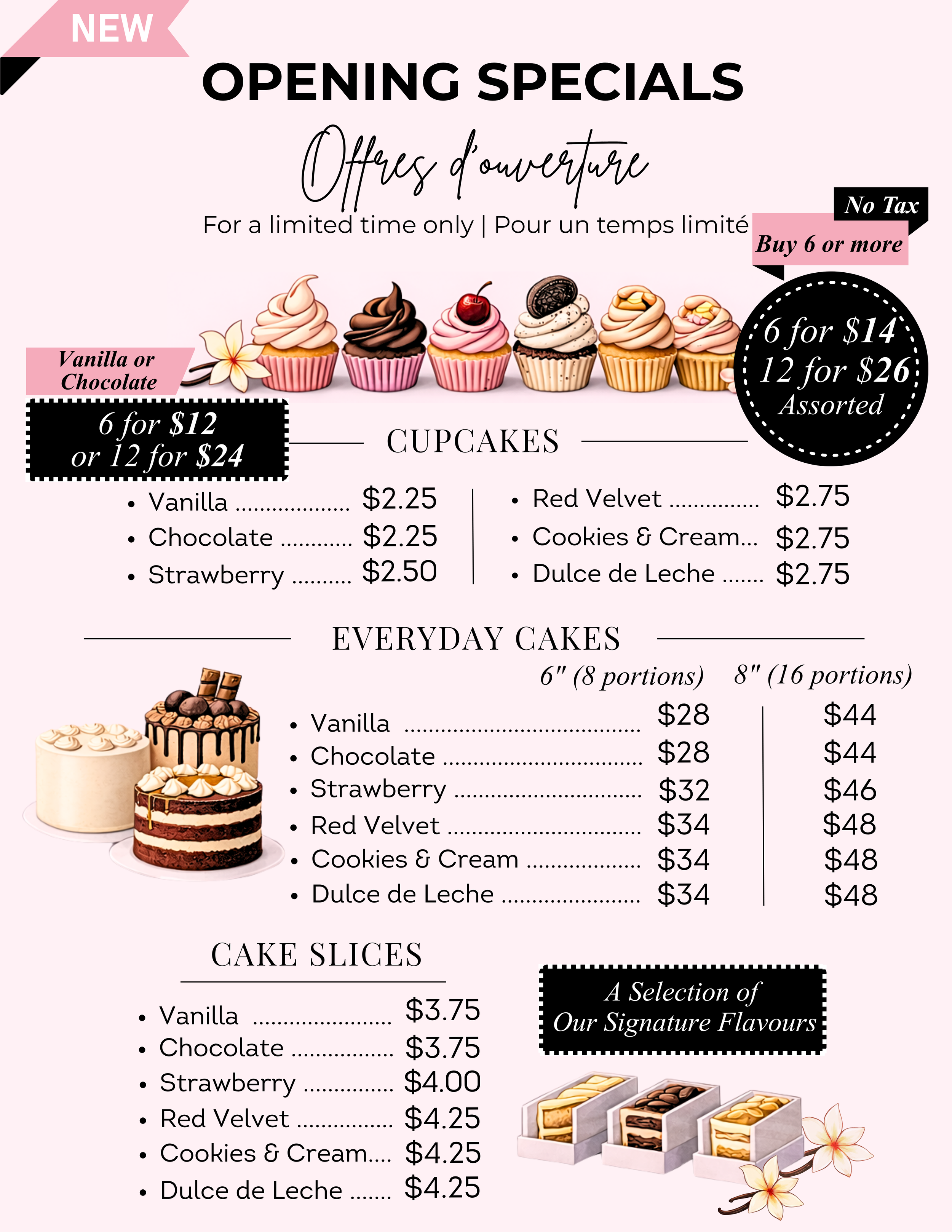 Discover our selection of everyday cakes and desserts, prepared daily and available while quantities last.